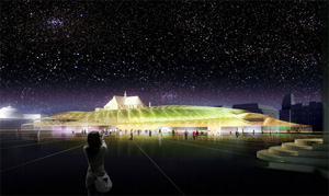 Artist’s rendering of the Les Halles Canopée at night. Studiosezz with I. Tiursic and W. Mile |