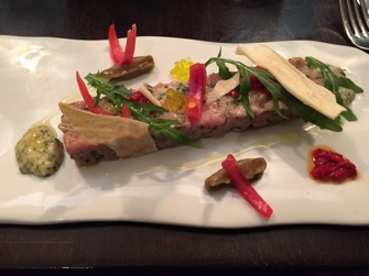 Meanwhile, I was more than content with another surf and turf offering: a tartare of veal and oysters with sherry vinegar, piquillos and