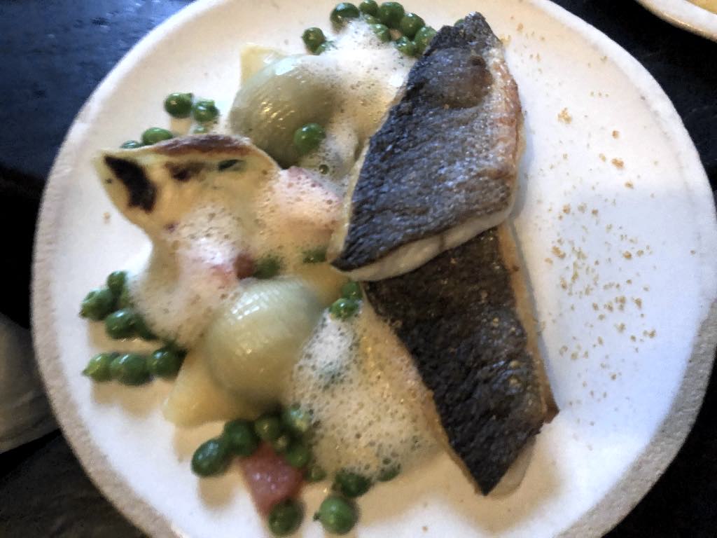 Those three fantastic dishes made the fourth – wild bass with spinach-filled conchiglione and plump, super fresh peas – pale a bit in my eyes, but it was extremely fine in its way, especially those vegetables.