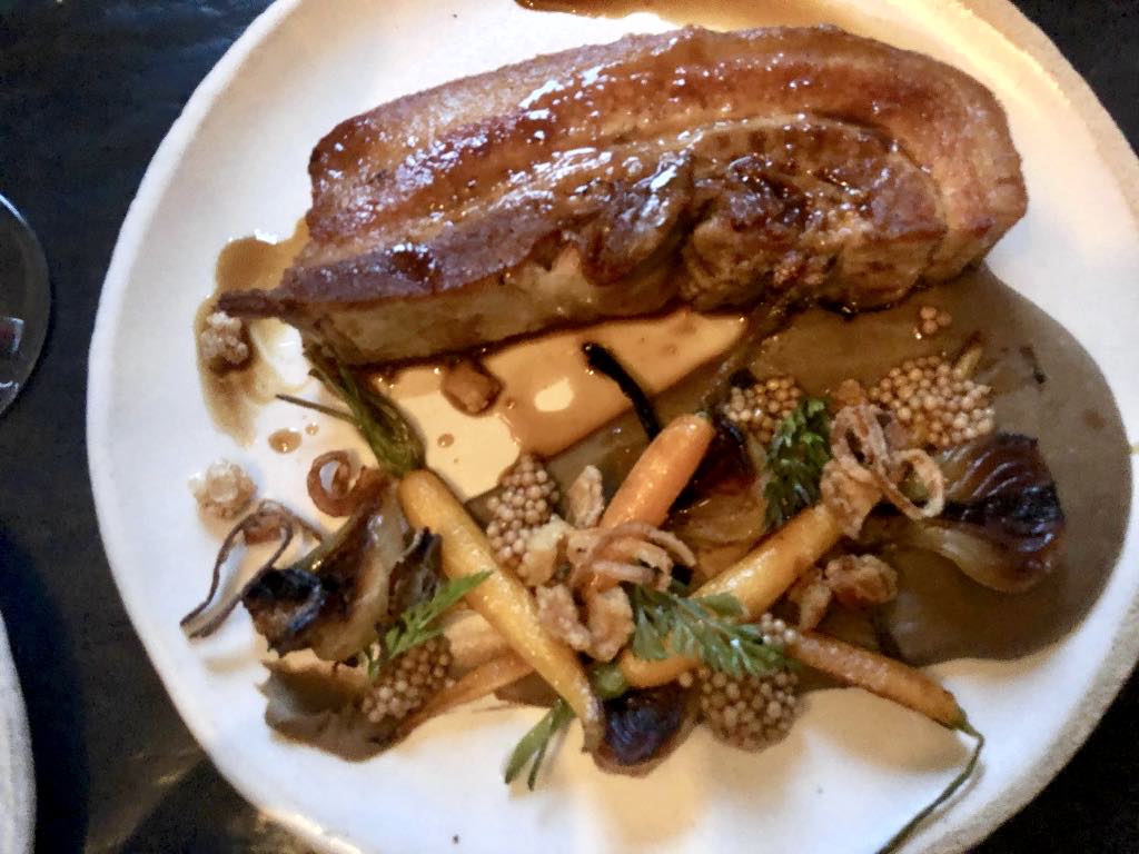 If possible, the main courses were even better, truly exciting. I think we all agreed that the pork belly with puréed lentils, baby carrots, carrot leaves and grain-mustard sauce was a stunner. If you go to L’Office, do not miss out on it.