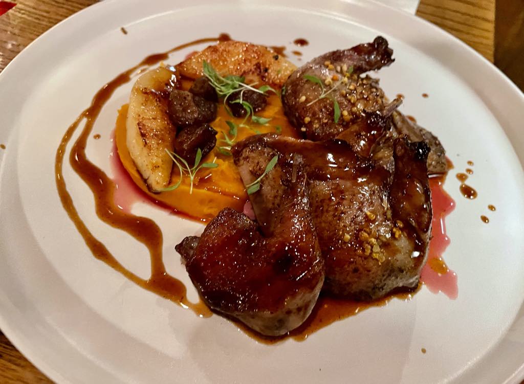 Just as good was the meaty, tender, perfectly cooked pigeon, wonderfully accompanied by puréed pumpkin, quince paste and roasted chestnuts.