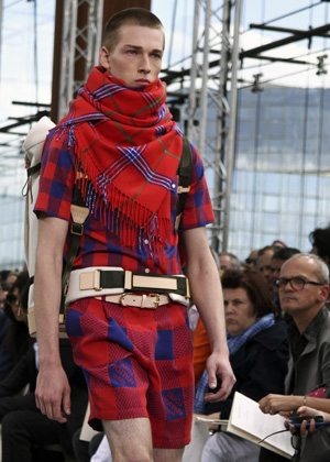 Our favorite take on men’s fashion from last week’s catwalk shows in Paris: the exuberantly colorful vision for summer 2012 of Louis Vuitton’s new British designer, Kim Jones. We like his optimism! Photo: Carly Bangs