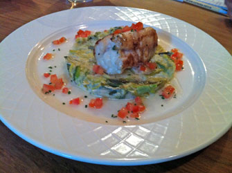 My overall impression was that the chef should let some more of his haute cuisine training show through. He keeps everything rather too simple for the expectations raised by his credentials and by the prices. Even the complimentary appetizer, which usually gives a chef a chance to show off a little, was just a piece of rolled-up smoked salmon (albeit very delicious smoked salmon) with chives, and the feeble attempts to brighten up some of the dishes with a sprinkling of chopped tomatoes looked rather sad and dated. On the whole, the experience was very sympathique, however, especially thanks to the waitress, and I will return to see how he advances.