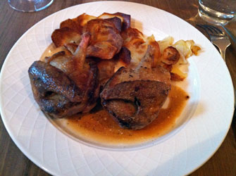 complaints, but I didn’t hear any whoops of delight either. I had the roast pigeon, a bird