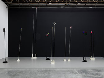 Exhibition view of “Takis: Magnetic Fields,” Palais de Tokyo, 2015. Photo: André Morin. ADAGP, Paris 2015.