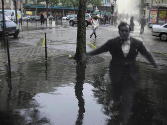 Rondepierre, who plays with moving film images to create something new, either by manipulating them or taking advantage of accidents. In one series, for example, he selected frames of corroded film from old silent movies, and in another he cleverly superimposed images from old movies onto scenes from more recent ones. The results are variously enigmatic, surreal or humorous.