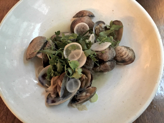 was another triumph, so good that I found the high-quality chorizo (a typical Spanish touch) to be completely extraneous until I realized that its flavor added just the right balance to the luscious sauce. A touch of green crunch was added by the salicornia on top.