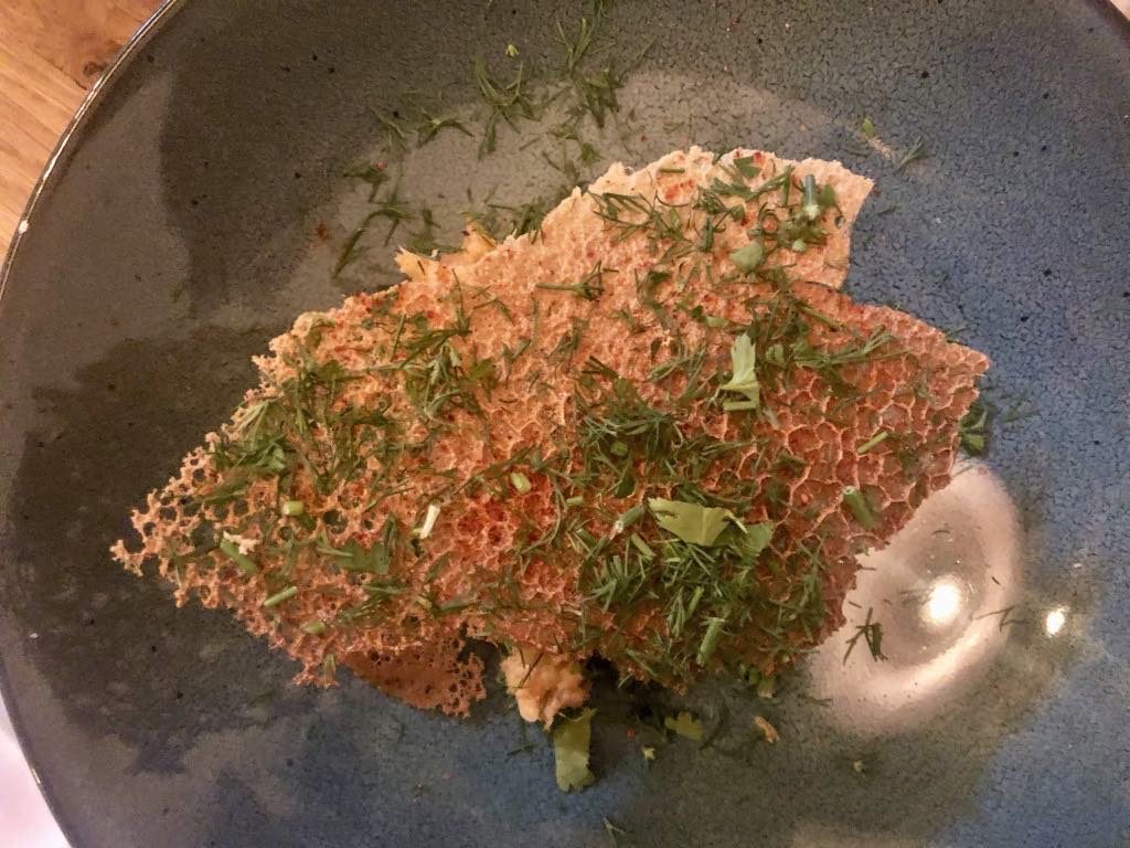 The bass tartare with mint ricotta, served on carasau bread (crispy, paper-thin Sardinian flatbread) was tasty and delicate but perhaps a bit bland.
