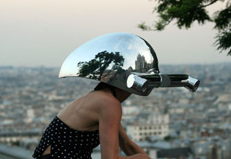 Ever wondered what the world looks like to a hammerhead shark, which has hyper-stereo vision, or a horse, which has a 350-degree view of its surroundings? Anne Cleary and Denis Connolly, a pair of new-media artists better known as Cleary Connolly, not only wondered but set about creating “Meta-Perceptual Helmets” that allow wearers to see the world from the point of view of various creatures, including sharks, horses, cats (peripheral vision in one eye and frontal vision in the other so that they can watch out for predators while hunting their own prey), chameleons (which can look backward and forward at the same time) and giraffes (which see the world from on high). The sixth helmet offers bifocal vision, which would allow us to focus on one task while taking in our surroundings at the same time. The six helmets, handsome shiny sculptures in their own right, were handmade in aluminum by Neil McKenzie, and are now on show at the Irish Cultural Center in Paris as part of the “Meta-Perception Club,” a series of exhibitions and events involving musicians, performance artists and visual artists. Three “happenings” will take place, on Jan. 22, Feb. 5 and Feb. 19. To try the helmets yourself, visit the center and meet Cleary and Connolly between 2 PM and 5 PM, Tues. to Fri., Jan. 6-Feb. 20. For more details, see the center’s website.