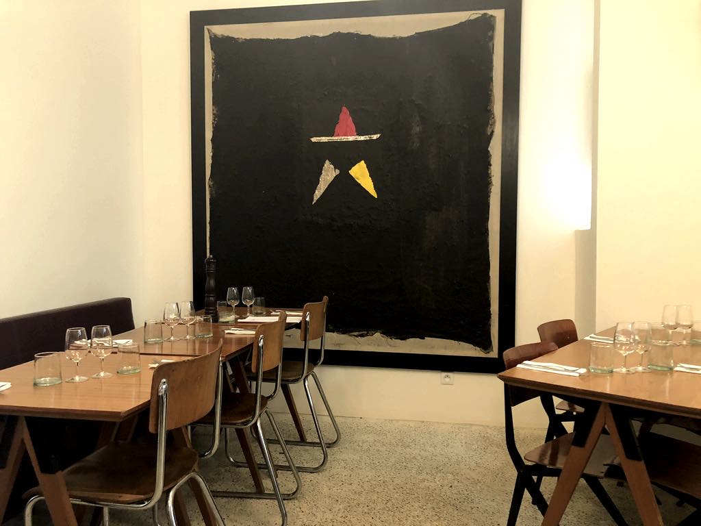 In the front of Ô Divin, a new restaurant in an out-of-the-way corner of Paris’s 17th arrondissement, is a small deli selling fine wine, cheese, sausages and more. Beyond it is a pretty dining room with bouquets of fresh flowers and a few artworks on the walls – including a large black painting with a red, yellow, white and black star (my dining companion saw it as an abstraction of a man in underpants; see photo below to decide for yourself).