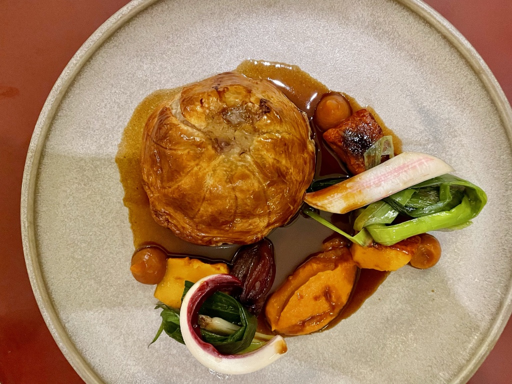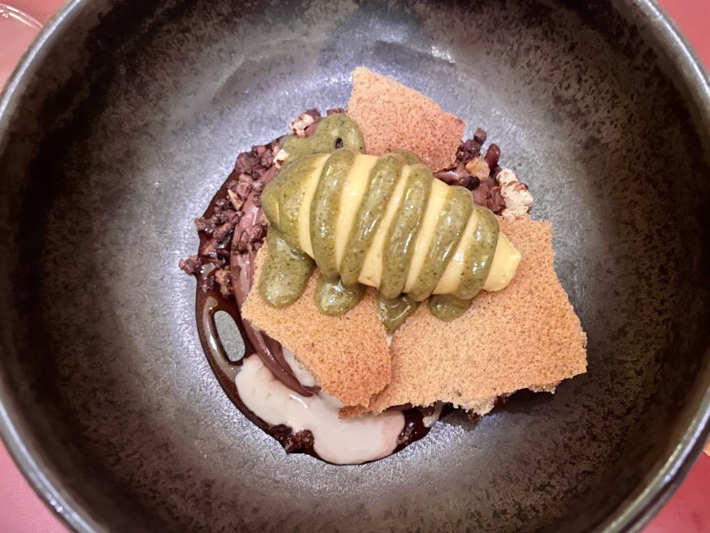 The pièce de résistance of the meal was a sublime tourte of boar and foie gras, served with squash, leeks and a quince-gochujang condiment. The pastry crust was perfection, the filling not at all gamey (I wouldn’t have minded if it was) and the sauce delectable. The puréed squash was full of flavor, with a wonderfully smooth texture. (Note: among the main courses, there were three meat and two fish dishes, but no vegetarian offerings.)