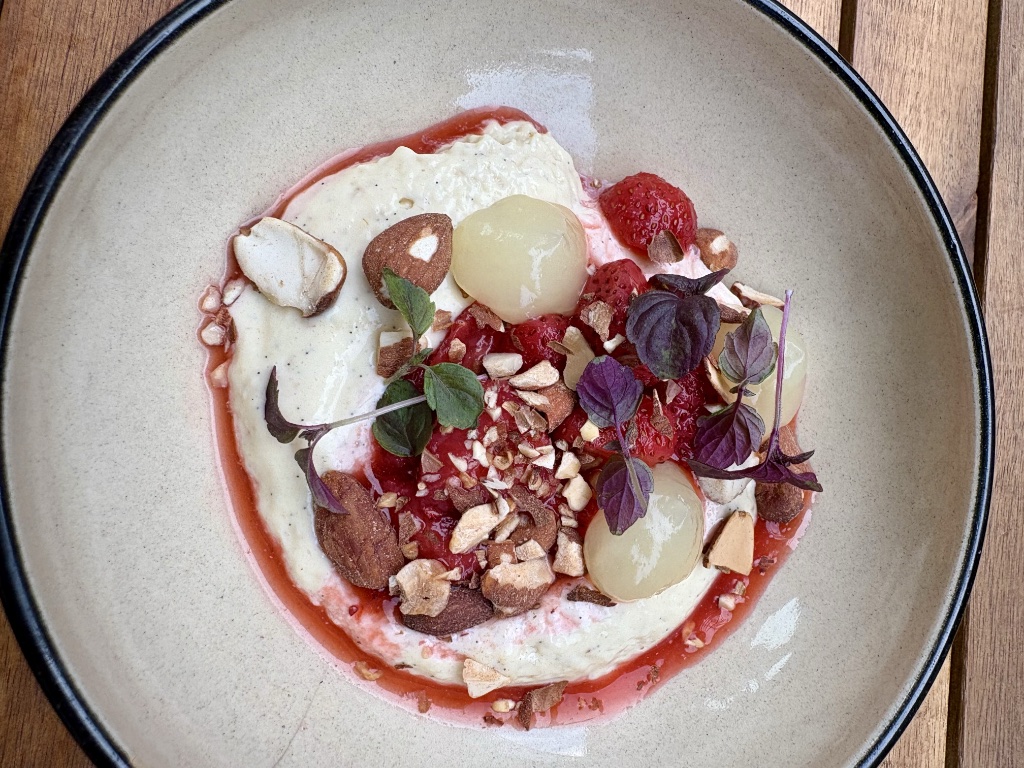 After all those great dishes, who knew that the pièce de resistance would come at the very end: a deliciously refreshing and satisfying dessert consisting of a white-chocolate cream with a strawberry coulis, topped with fresh strawberries with yuzu, litchis and almonds.