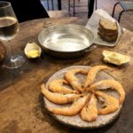 The menu featured oysters, of course, but I had the lunch special: three courses for €18. The starter that day was a plate of no fewer than eight big, fat organic shrimp in their shells. I’m not crazy about shrimp, but these shrimp, served with homemade mayonnaise and salted Bordier butter (one of the best brands) for the lovely bread, truly made me happy.