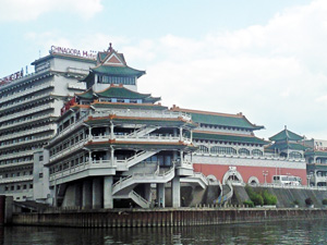 Want to get out of town this summer without going too far or spending too much money? Three-hour canal cruises from the Bassin de la Villette to Aulnay-sur-Bois are being offered for only €1 every weekend through Aug. 30 between 10:45 a.m. and 8:45 p.m. by the Seine Saint-Denis department, which is also holding free public dances on a floating barge at different locations and times. Click here for details. Another way to see the industrial suburbs of Paris while enjoying a boat ride is to take the Voguéo water bus from the Gare d’Austerlitz stop to École Vétérinaire de Maisons-Alfort. Keep an eye out for the amazing pagoda-style Chinagora (pictured above), an immense Chinese restaurant and hotel on a peninsula projecting into the Seine on the south side. The return trip takes one hour and 20 minutes.