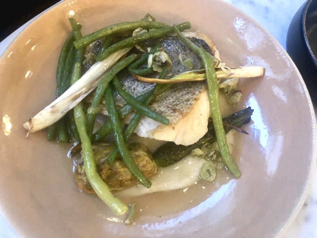 The only non-pasta main course we ordered was lieu jaune (pollack) with perfect green beans and stuffed zucchini flowers, another total success.