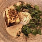 Among the three of us, we tried all the dishes on offer. One of the first courses consisted of chestnut soup with a soft-boiled egg, sautéed oyster mushrooms and a big, delicious chunk of grilled and buttered brioche.
