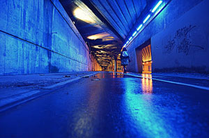 A blue-lit tunnel under the tracks of the Gare de Lyon. Photo: Eric Tenin of Paris Daily Photo.