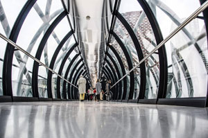 A bridge between the two buildings of the new Beaugrenelle shopping center in Paris. Photo: Eric Tenin of Paris Daily Photo.