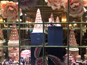 Trees of macaroons in the window of Ladurée on the Rue Royale in Paris. © Paris Update