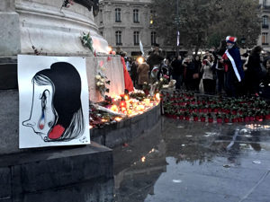 Memorials on the Place de la République on the first anniversary of the terrorist attacks of Nov. 13, 2015. © Paris Update
