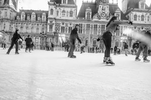 in spite of the mild winter weather in Paris, Parisians can continue to enjoy the ice-skating rink in front of the Hôtel de Ville until March 2. Photo: Eric Tenin of Paris Daily Photo.