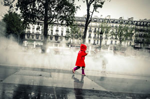Playing in the misty fountain on Paris’s renovated Place de la République. Photo: Eric Tenin of Paris Daily Photo.