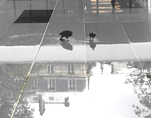 Two winged Parisians enjoying the “miroir ‘d’eau” in front of the Fluctuat Nec Mergitur café on the Place de la République. Photo © Paris Update