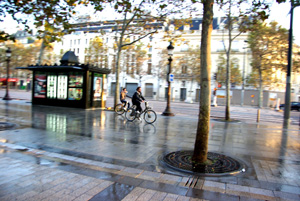 Biking on the Champs-Elysées.Photo © Eric Tenin of ParisDailyPhoto.com