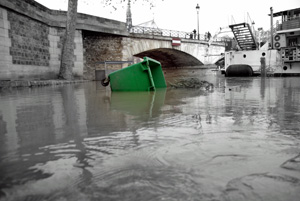 All that melting snow has caused the Seine to overflow its banks and pick up a trash bin. Photo: Eric Tenin of ParisDailyPhoto.com