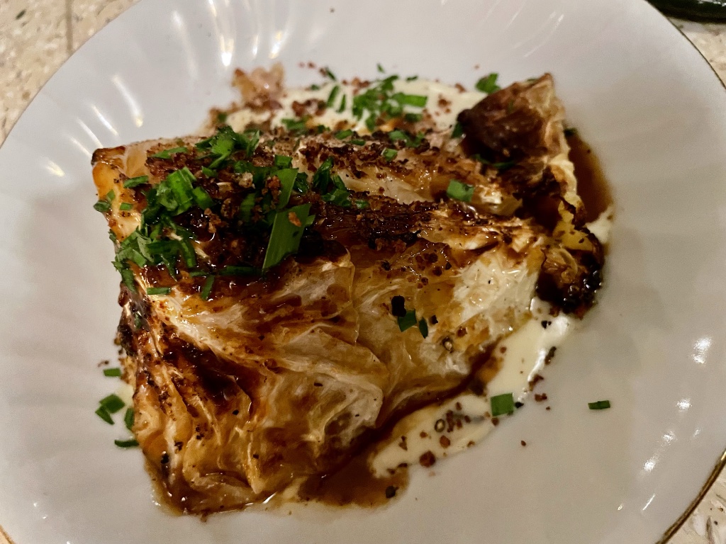 The other veg was supposed to be smoked cauliflower with béchamel sauce but it was replaced by tender, beautifully broiled cabbage that day. Who knew that the humble cruciferous vegetable could taste this good?