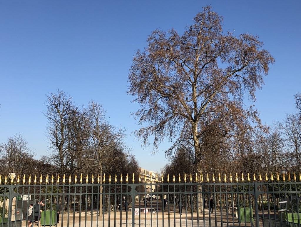 Tree in the gilded cage of the Tuileries Garden. © Paris Update
