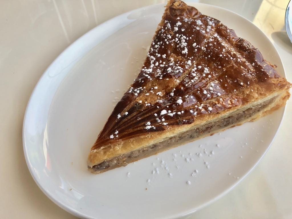 The seasonal galette des rois that came with my set menu, however, was an odd specimen. It had a thick, mud-colored filling that tasted slightly meaty, nothing to do with the divine almond-paste-and-flaky-pastry torte the French traditionally eat for Epiphany (but which is now consumed throughout the month of January). I thought this one was fairly terrible, but one of my friends was categorical: “Prison would be too good for the person who made this,” he said