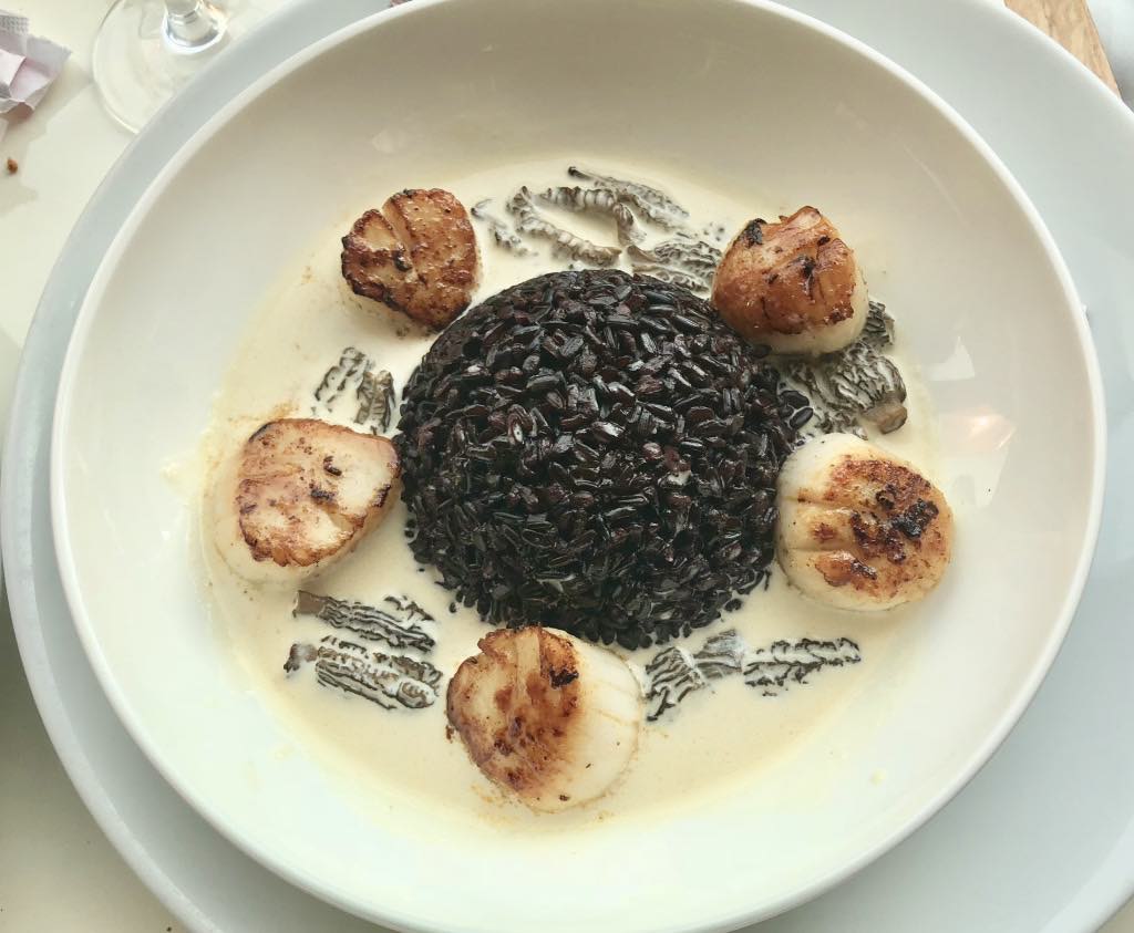 The most successful main course was scallops with morels and black rice. The friend who had this was the only really happy camper in the group during this course.