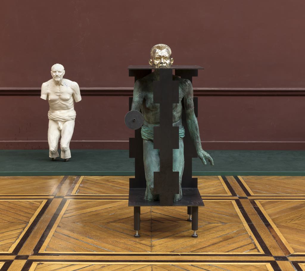 Upon entering the show, in two grand halls in the Beaux-Arts’ 19th-century building on the Quai Malaquais, one’s senses are confounded by the sight of so many familiar-looking antique sculptures accompanied by their strange contemporary partners, some of which seem to echo them and others to mock them.