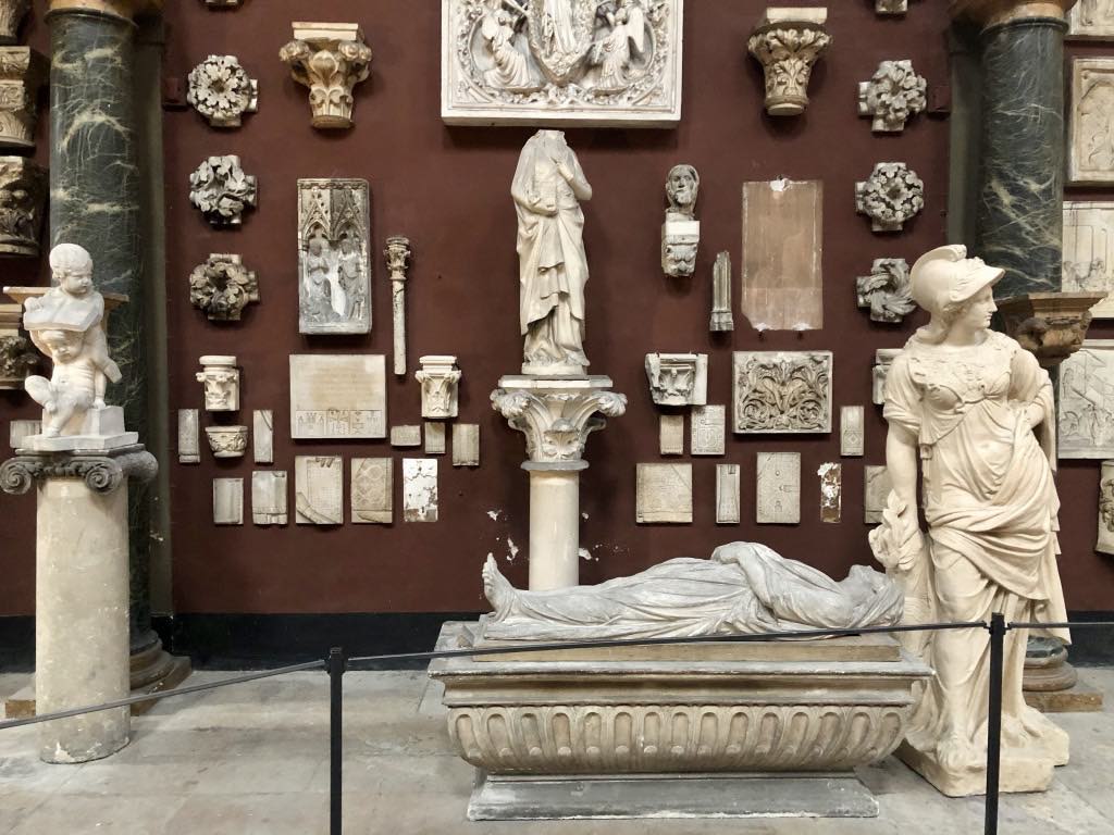Lucky students at Paris’s École des Beaux-Arts! Not only do they get to study and make art in beautiful historic buildings in the heart of Saint Germain-des-Prés – now rather dilapidated, it’s true, but that only adds to their charm – on a campus in the heart of Saint Germain-des-Prés, but they are surrounded by masterful copies of sculptures and paintings of art through the ages, mostly made in the 19th century by expert Italian copyists.