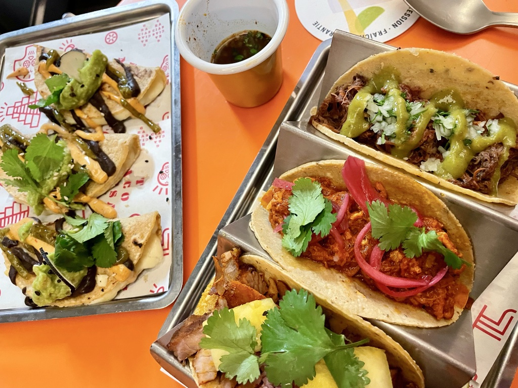 The long taco wait is over. Sometime last summer, I read that Beatriz Gonzalez, the ebullient chef/owner of two wonderful Paris restaurants, Coretta and Neva Cuisine, was planning to open a taco bar in September. When a website appeared, I checked it constantly for news, longing for some authentic tacos (don’t even mention those lead-weight abominations known as “French tacos”), but for months and months and months, the site displayed only a name, Taco Mesa, an address and the announcement “Coming Soon.”