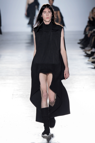 appropriate that it should end with one of Rick Owens’ peekaboo men’s tunics that let it all