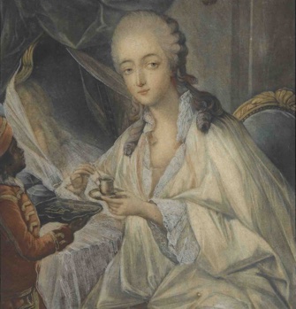 One painting shows the Countess Du Barry, Louis XV’s official mistress, being served a cup of coffee by Zamor, a Bengalese boy in the