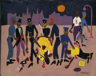 Works by African-American artists are interspersed throughout the show, but the majority are presented at the end, giving long overdue attention to such names as (in addition to Lawrence, who is well represented here), Henry Ossawa Tanner (1859-1937), Horace Pippin (1888-1946), Archibald J. Motley, Jr. (1891-1981), Aaron Douglas (1899-1979), Romare Bearden (1911-88), Elizabeth Catlett (1915-2012), Norman Lewis (1909-79), Robert Thompson (1937-1966), David Hammons (born 1943), Mickalene Thomas (born 1971), Ellen Gallagher (born 1965), just some of the more than 50 on show.
