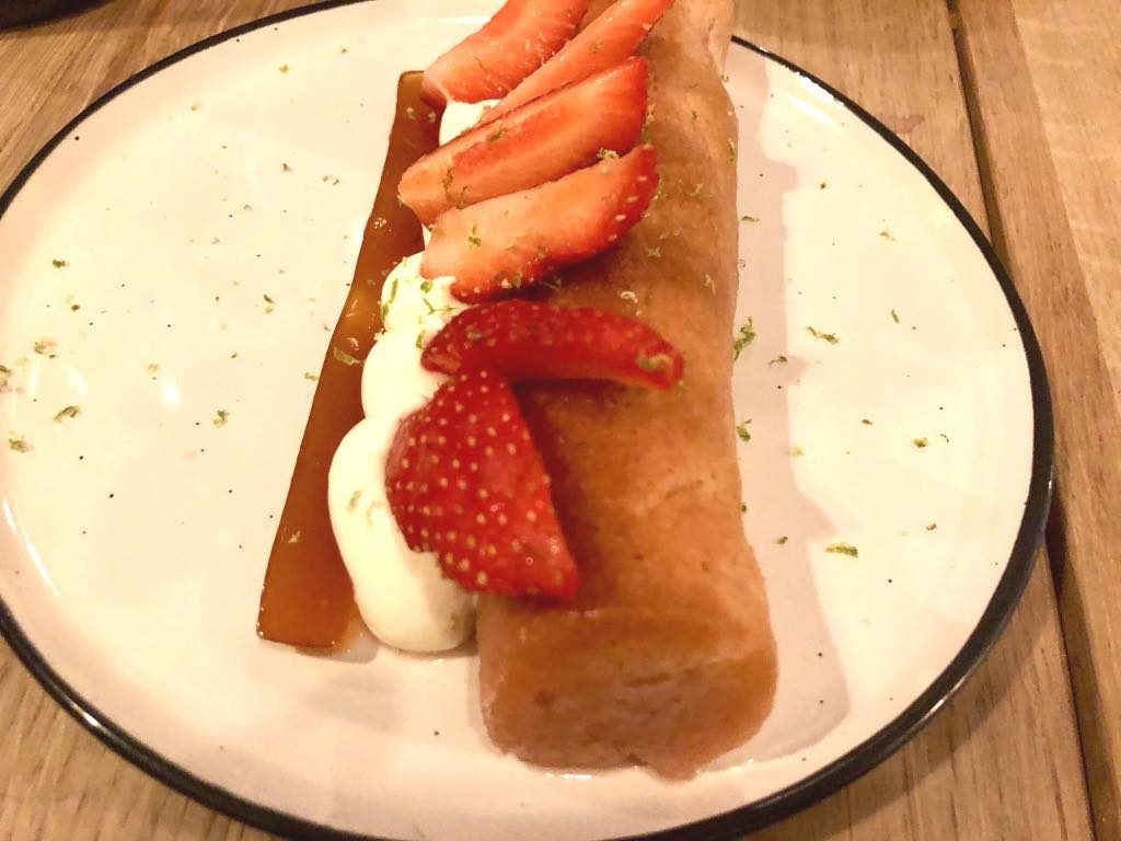 We basically loved all the starters and mains, some a little more than others. The inventive beet dip with hibiscus, served with rice crackers, was a big favorite, but then so were the chickpea fries and truffle “croque.”