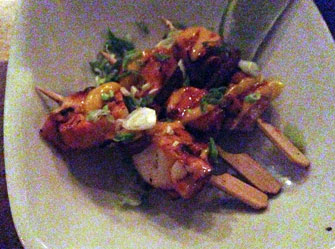 brochettes with a nice barbecue flavor, tender texture and a touch of heat from bits of chorizo.