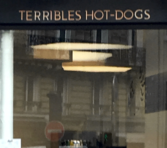 There’s actually a kind of logic to this name: “terrible” in French is (colloquially) a compliment, and adjectives have singular and plural forms — hence the “s” in “terribles.” Of course, to be really grammatical, it should be “Terribles Hots Dogs.”