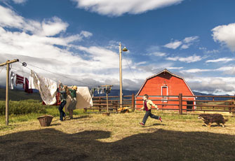 For this film made in English with mostly English-speaking actors, Jeunet went to Canada to film a story set in Montana. As in Amélie, everything in T.S. Spivet is slightly hyperreal, the colors too saturated, the landscapes too beautiful. It’s all too perfect – even the chaos of a little boy’s room looks artistically arranged, and a buffalo that happens to wander through one scene is perfectly groomed, unlike the mangy specimens I have seen. This is not the scary hyperrealism of a David Lynch film, however, with evil forces lurking underneath – it seems intended to hint that a better world is possible.