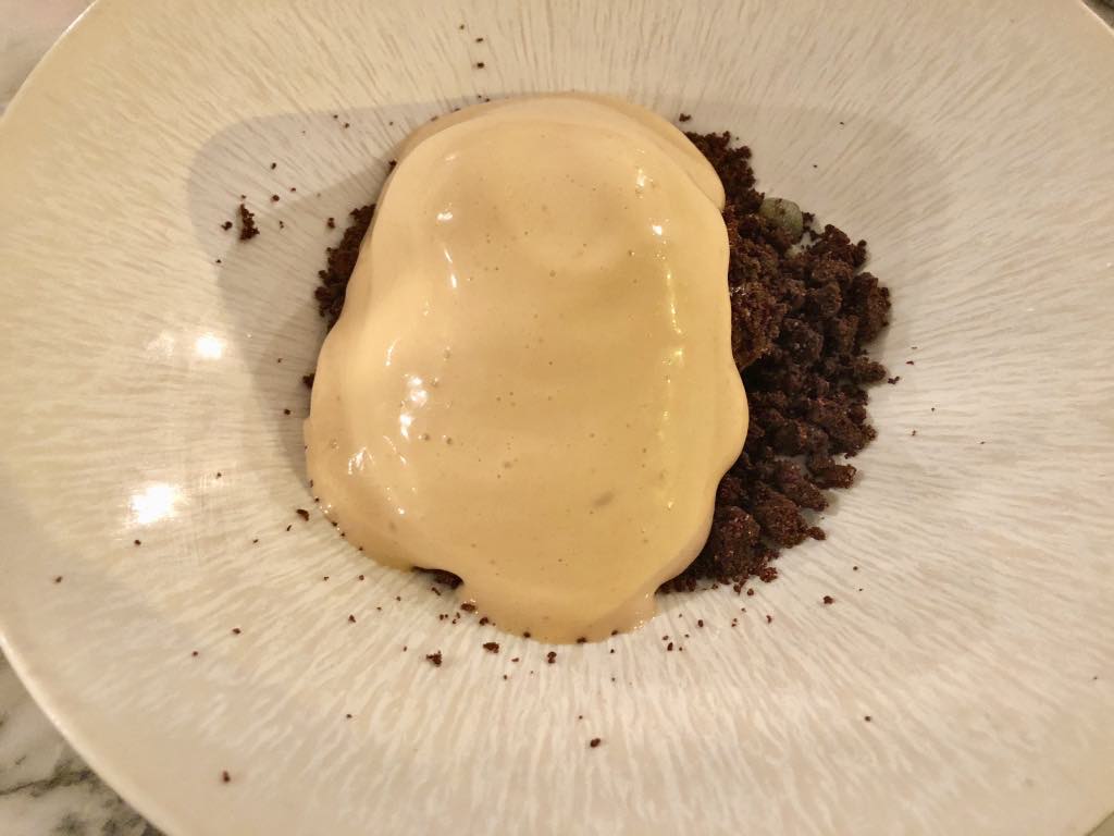 It was the other dessert that drove us mad with delight: a chocolate ganache with chocolate crumble, topped with a caramel mousse. The secret ingredient was, of all things, capers, which added pleasing bursts of saltiness. It was the quality of the chocolate (Valrhona, I found out later) that made it so good, however.