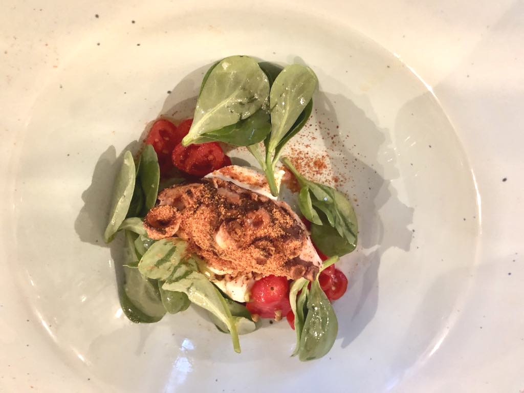 Tom went for luxury in his starter of Brittany lobster with peaches and pickled onions. Thrown in for good measure were some fava beans. This dish revealed something else about the restaurant: that it has a fantastic fruit and vegetable supplier. The peaches and beans were perfection, as were the cherry tomatoes and lamb’s lettuce in my crab starter. Everything was fresh and bright, even if the dishes were not revelatory.
