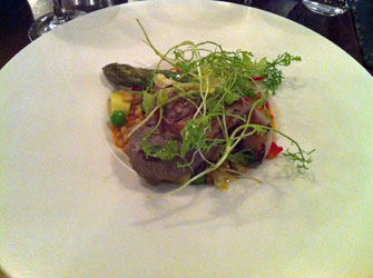 The meat course was filet mignon de cochon with a spelt risotto, a stalk of asparagus, more